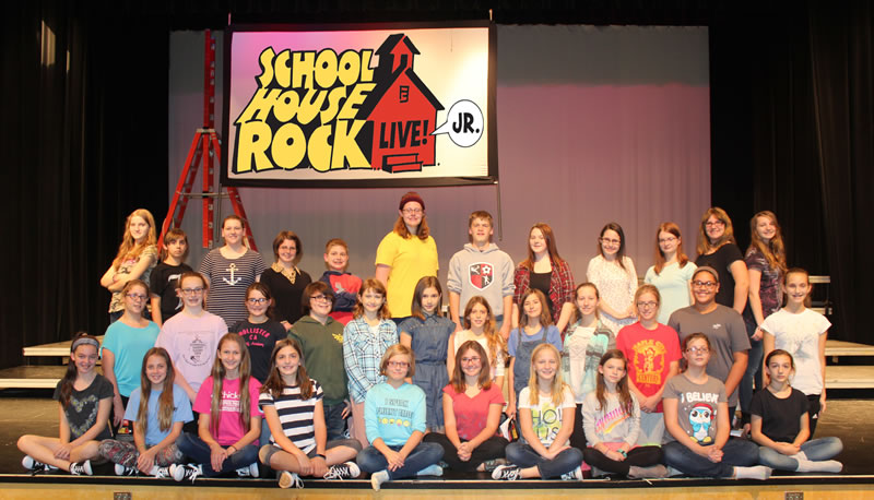 The Wayne Highlands cast of “School House Rock Live!” includes Tamsin (Tom), played by Brooke Landers; Georgette played by Lexi Pinto; Joe, played by Kaeleb Jones; Dori, played by Brianna Taninies; Shulie, played by Rochelle Keast; Elvis, played by Zack Wilken; and Dina played by Maria Kannebecker. The company ensemble also includes Kayla Ammann, Lea Bloxham, Madison Breidenstein, Makayla Breidenstein, Kaitlyn DeFazio, Angela DeHaven, Bella DeNardo-Yost, Anna Dunsinger, Calvin Feustel, Kira Fox, Lindsey Gannon, Alison Green, Amaya Hall, Mariah Hannel, Shannon Hayden, Savannah Hocking, Caroline Klinkiewicz, Veara Lynn Kolhagen, Kallie Lazaro, Shae Levanowitz, Delilah Lohmann, James Manoy, Hannah Merritt, Andrea Meyer, Sandi Reager, Emily Roberts, Abby Skelton, Ava Slish, Alyssa Stumpo, Olivia Tagle, Anabelle Wengler, and Chloe Wolfe.